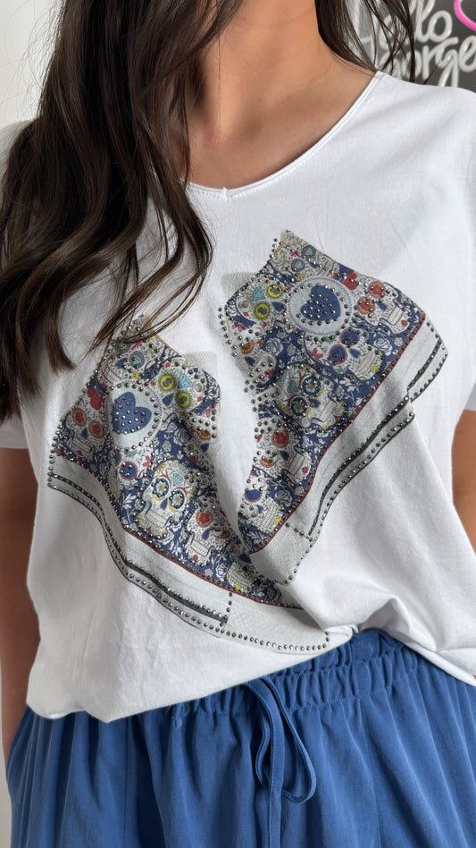 Carla V Neck "Trainer" T-Shirt Dark Blue