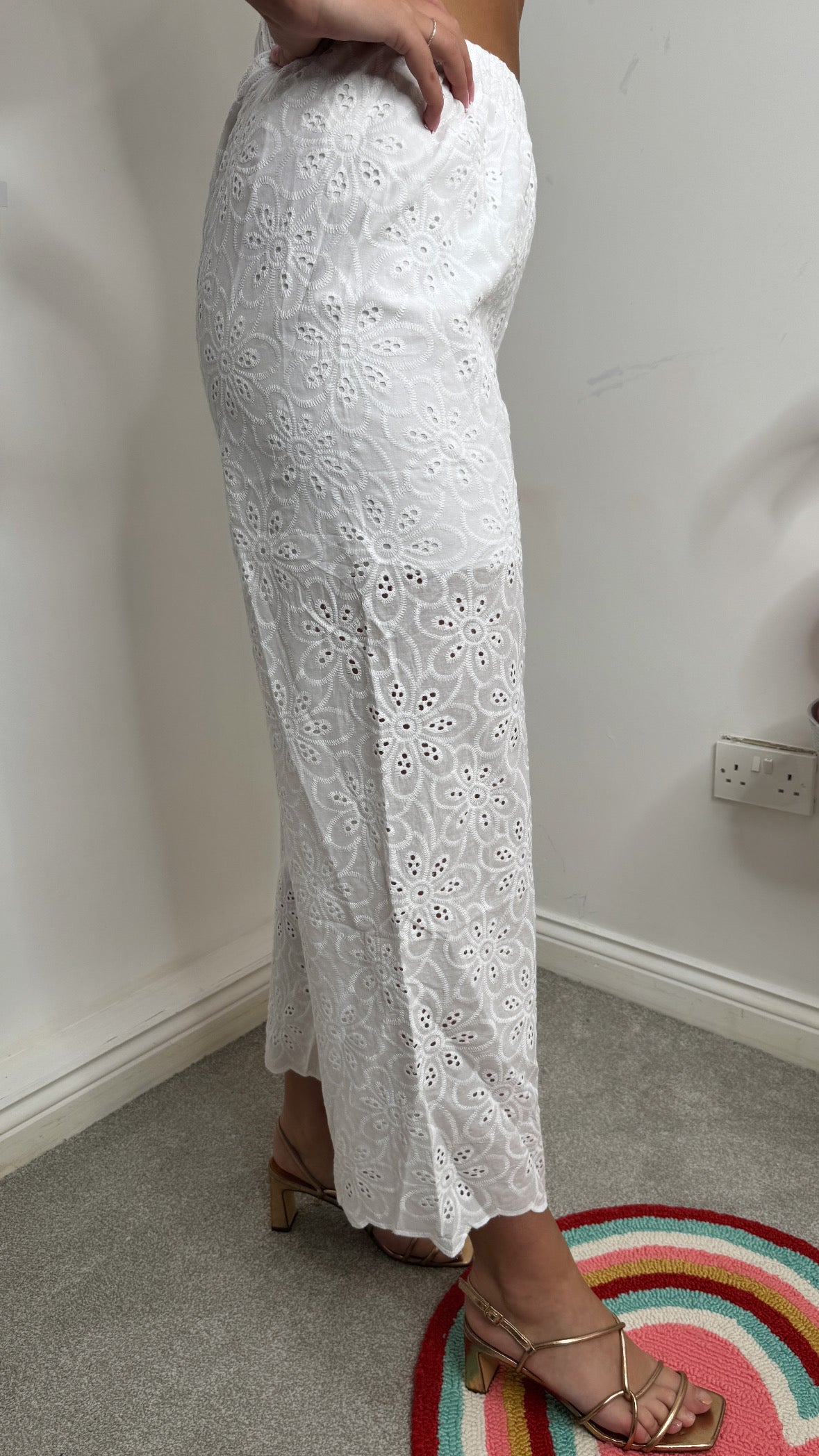 Ella White Broderie Cotton Wide Leg Trousers