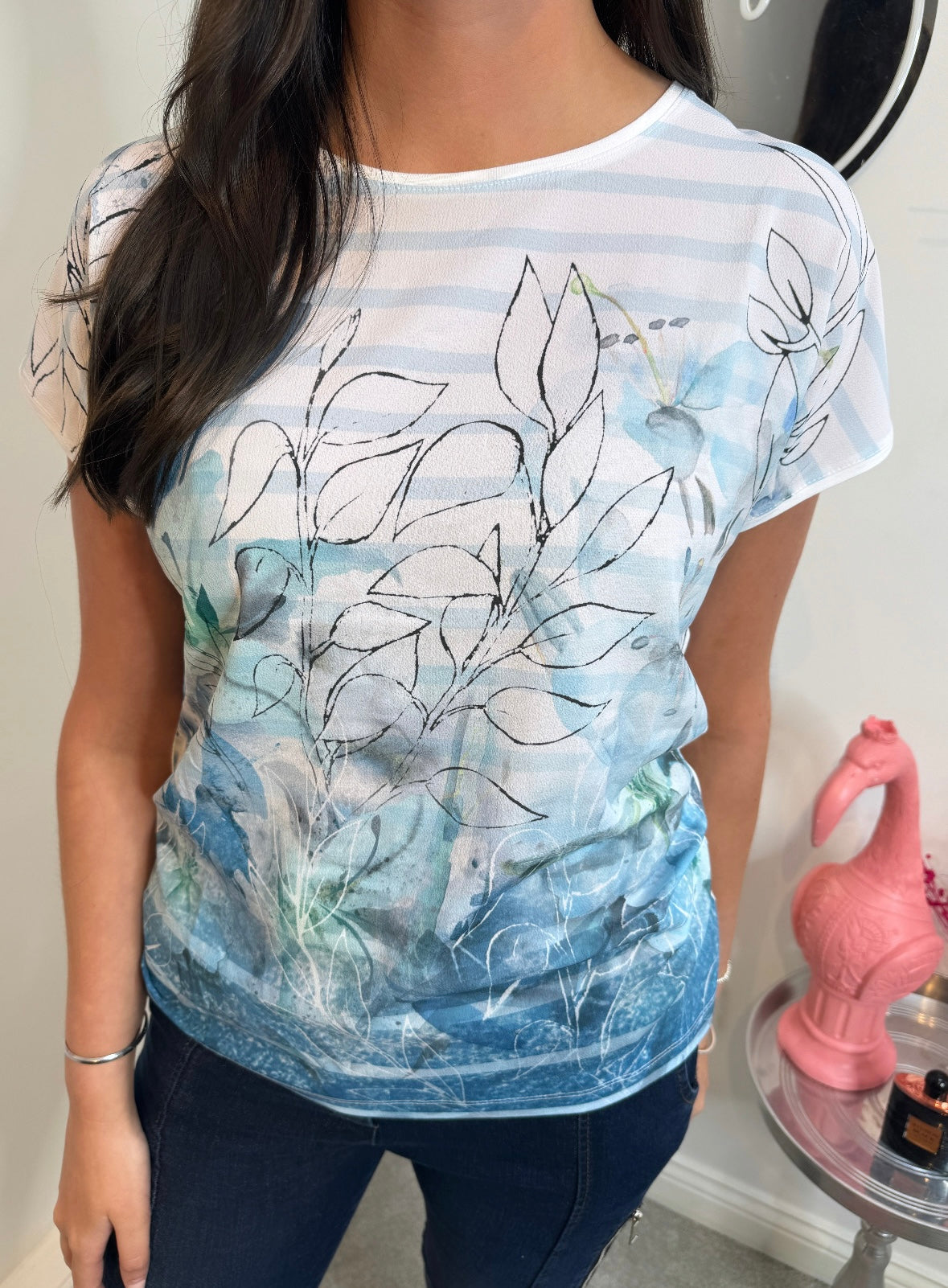 Faye Blue Floral Ocean Patterned T-Shirt