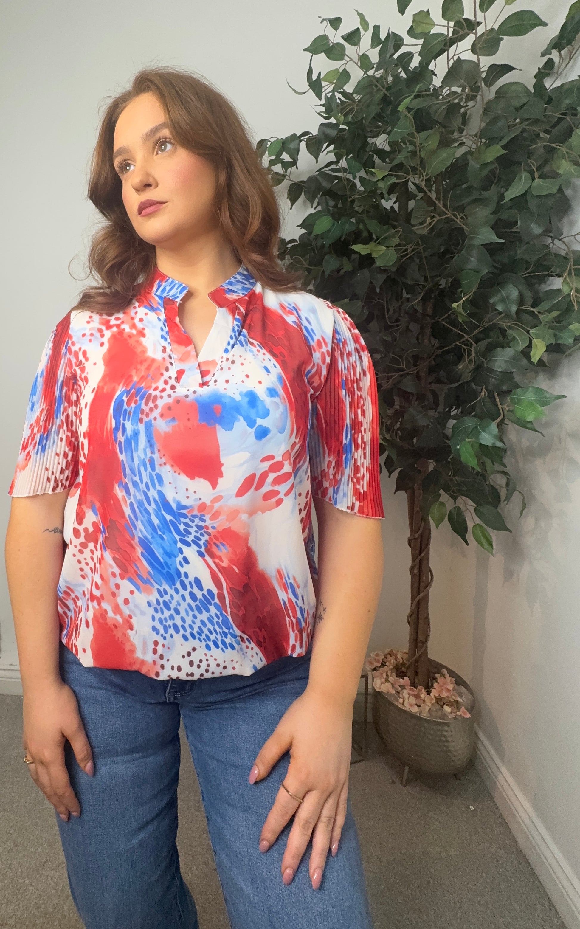 Lea Blue & Orange Spotted Blouse