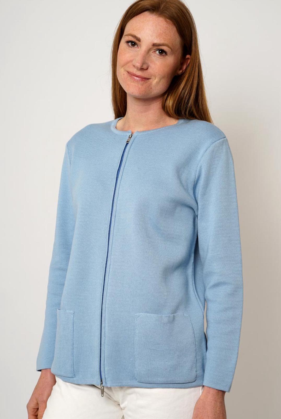 Lori Light Blue Full Zip Luxury Cotton Cardigan