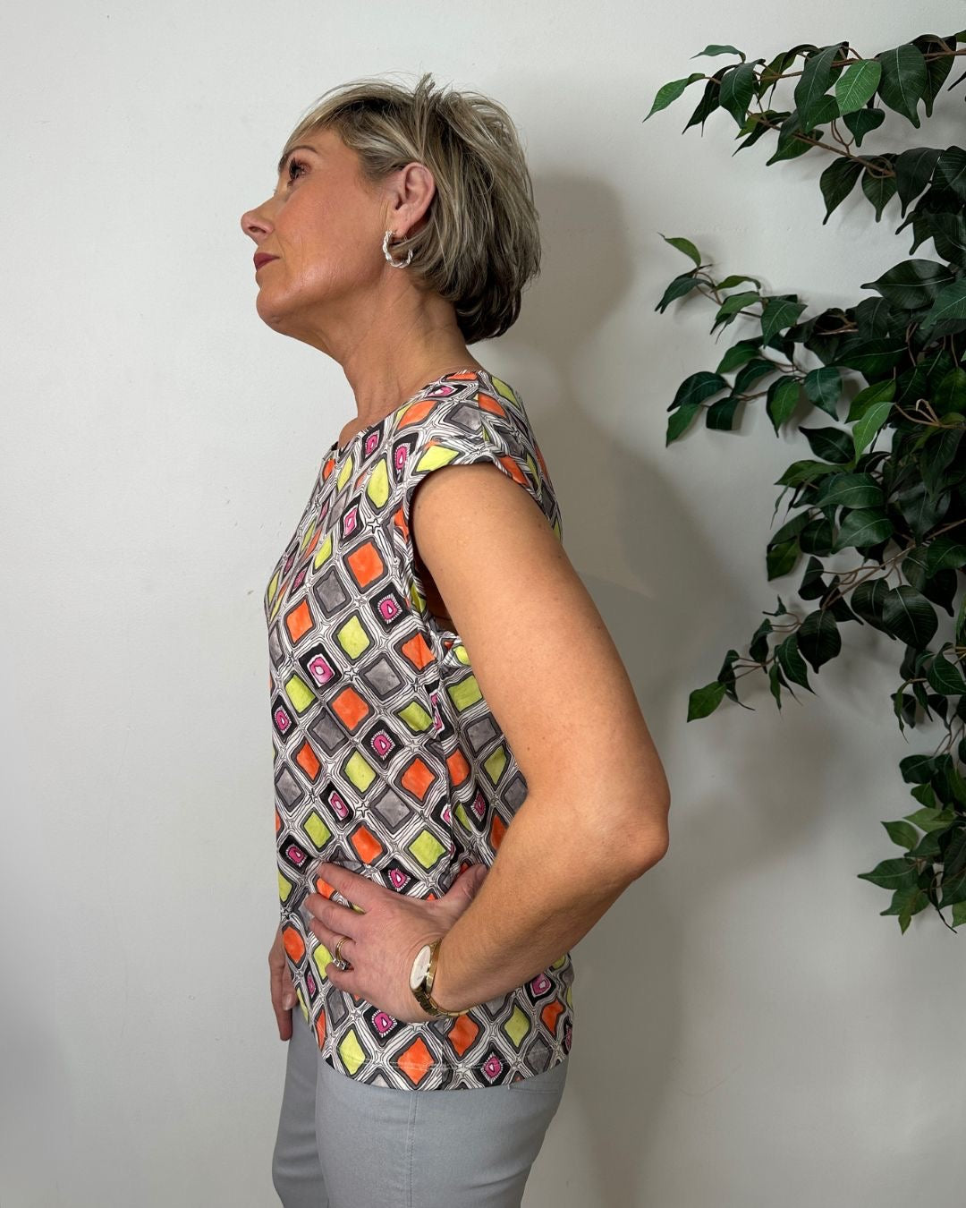 Nico Grey Diamond Print T-Shirt