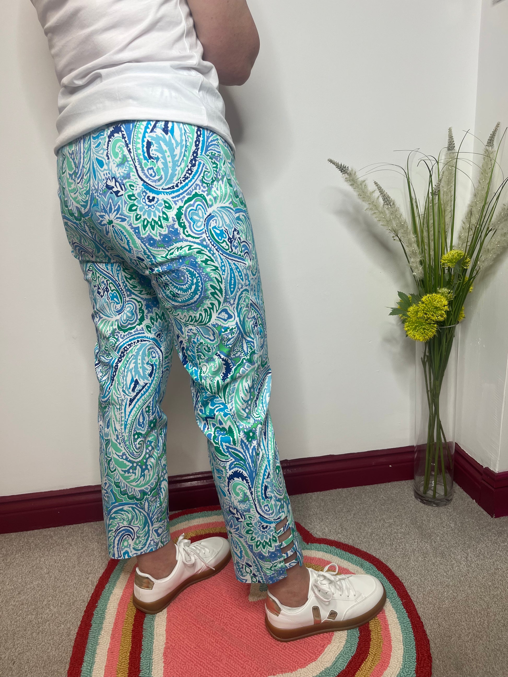 Robell Lena Paisley Trousers with Ladder Detail